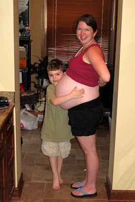 We have done “belly shots” throughout our pregnancy and often Big Brother Sean likes to be in them too. Usually he just stands next to me, but today he wanted to give Baby Benson a hug in the picture! Afterwards Sean said, “I just gave Baby Benson her first hug from me!”