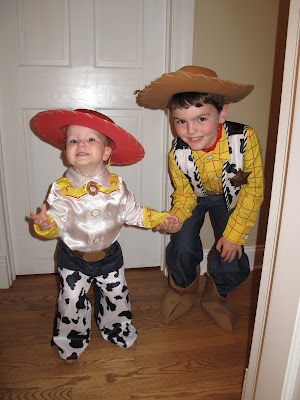 Now that I have given you the back story, I am sure you guessed that I took a few snapshots of my own little Woody and Jessie in costume tonight! I know that I am biased, but I think they are the cutest cowboy and cowgirl that I have ever seen!