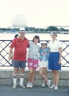 THEN — My dad, my sister, me and my mom in front of Spaceship Earth at Epcot (July 1985):