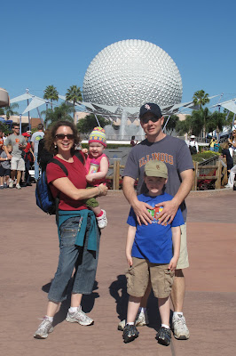 NOW — Me, Abby, Bob and Sean in front of Spaceship Earth at Epcot (November 2011):