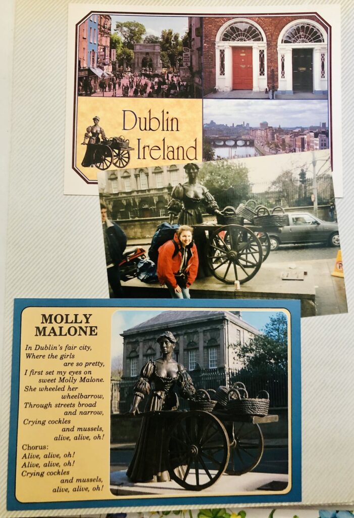 #2: A page from one of my old photo albums featuring the same Molly Malone, statue during my semester abroad in 1996 (when I was 21 posing in front of her), on a weekend trip to Ireland my roommate and I took in March that year. I love that we both got to visit and explore England, as well as Ireland (albeit very briefly) at age 21.